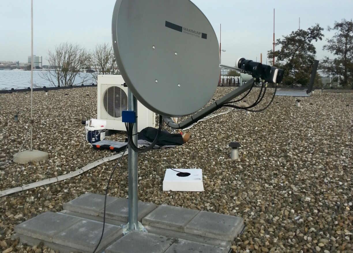 Levering en installatie van een automatisch zoekend satelliet tv + internet communicatie systeem